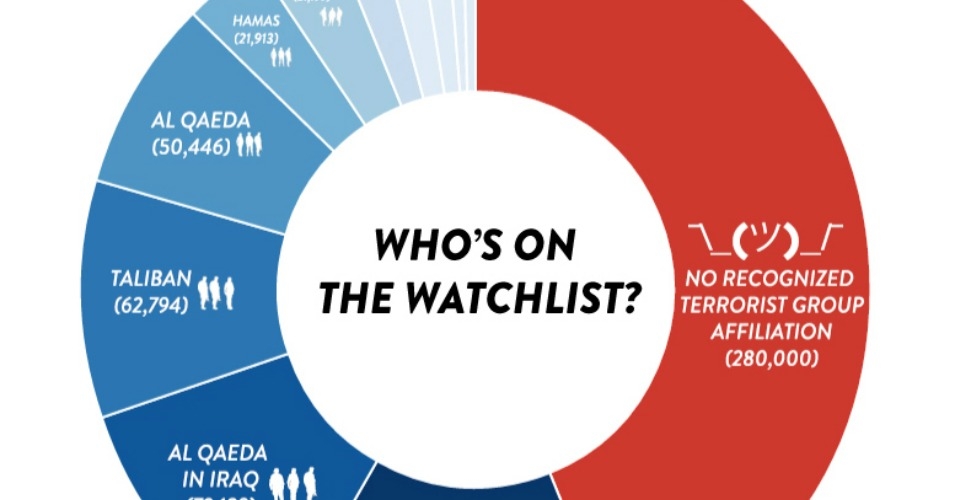 Publishing two classified, unredacted documents related to the White House’s “secret terrorist-tracking system,” The Intercept journalists, Jeremy Scahill and Ryan Devereaux, report that of the 680,000 people listed on the government’s widely-shared watchlist, more than 40 percent are defined as having “no recognized terrorist group affiliation.” The cumulative amount of people who are in the database for no reason adds up to 280,000 — more than the total number of al-Qaeda, Hamas, and Hezbollah suspects combined.