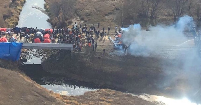 And filmmaker and journalist Josh Fox, also on the scene, decried the violence by authorities, telling Chariton, “These people from the North Dakota police force and the United States government has lost legitimacy in every respect today.”